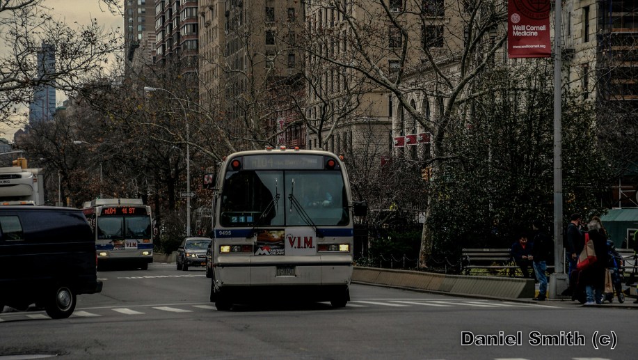 NovaBus RTS-06 9495 On The M104 At West 79th Street and Broadway on the Upper West Side area of New York. 12/18/2015