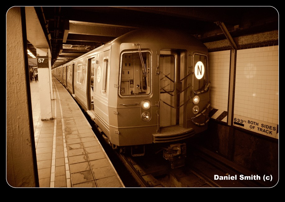 R68A N Train – 57th Street in Sepia Style. Needed to change it up a bit. 2014 (c)